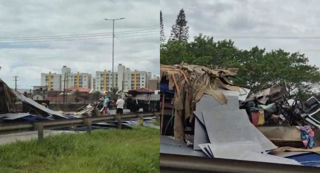VÍDEO – Motorista fica ferido em colisão entre caminhões na BR-101, em Barra Velha